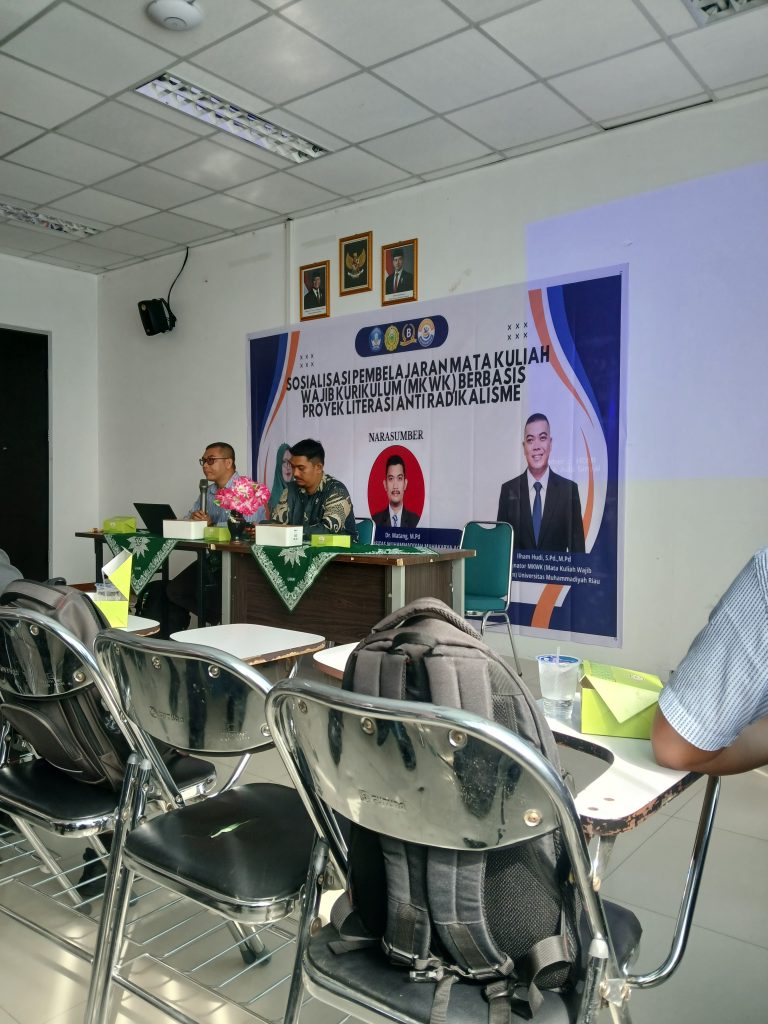 KABARLAH.COM, PEKANBARU – Kegiatan ini bertujuan untuk menyosialisasikan Pembelajaran Mata Kuliah Wajib Kurikulum (MKWK) berbasis proyek literasi anti Radikalisme kepada Dosen MKWK Universitas Muhammadiyah Riau agar pembelajaran berbasis proyek yang akan dilaksanakan lebih efektif dan efisien, Jum’at, 21/11/2025.