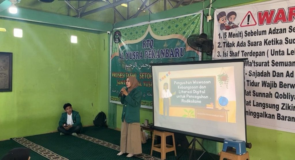 KABARLAH.COM, Pekanbaru – Dalam upaya memperkuat pemahaman kebangsaan sekaligus meningkatkan kemampuan literasi digital di kalangan generasi muda, Mahasiswa Program Studi Akuntansi angkatan 2024 dari Fakultas Ekonomi dan Bisnis, Universitas Muhammadiyah Riau (UMRI) melaksanakan sosialisasi dengan tema “Penguatan Wawasan Kebangsaan dan Literasi Digital untuk Pencegahan Radikalisme” di Rumah Tahfidz Qur’an (RTQ) Al-Yusra pada Jumat, 05 Desember 2025.