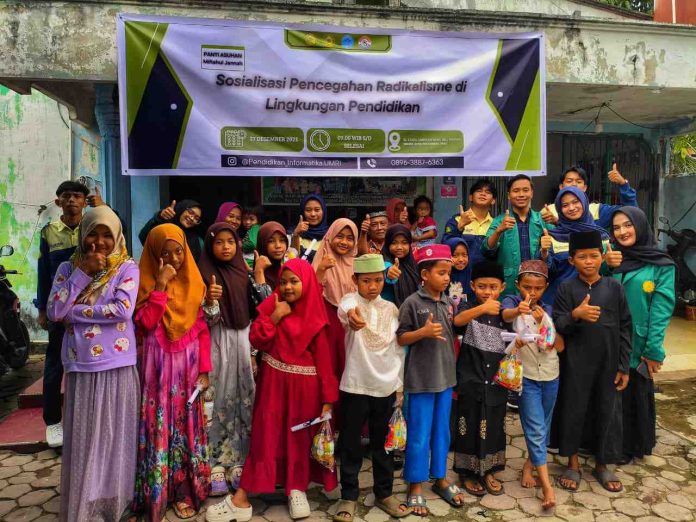 KABARLAH.COM, PEKANBARU – Kepedulian terhadap masa depan anak-anak kembali ditunjukkan oleh mahasiswa Program Studi Pendidikan Informatika Universitas Muhammadiyah Riau (UMRI). Sebanyak delapan mahasiswa turun langsung ke Panti Asuhan Miftahul Jannah, Jalan Fajar, Labuh Baru, Kecamatan Payung Sekaki, pada Sabtu (27/12/2025), untuk menggelar kegiatan sosialisasi pencegahan radikalisme yang dikemas secara ramah anak.