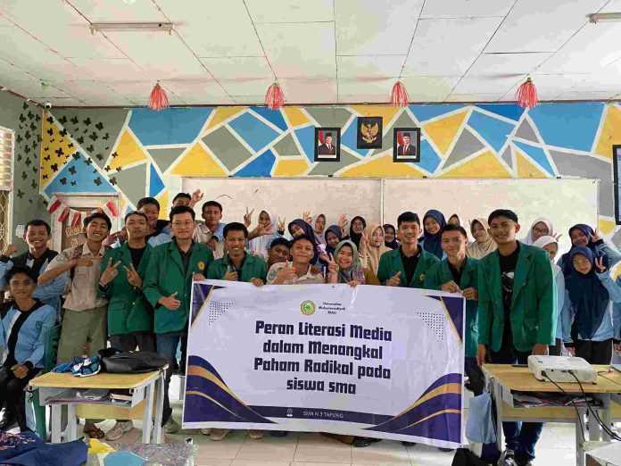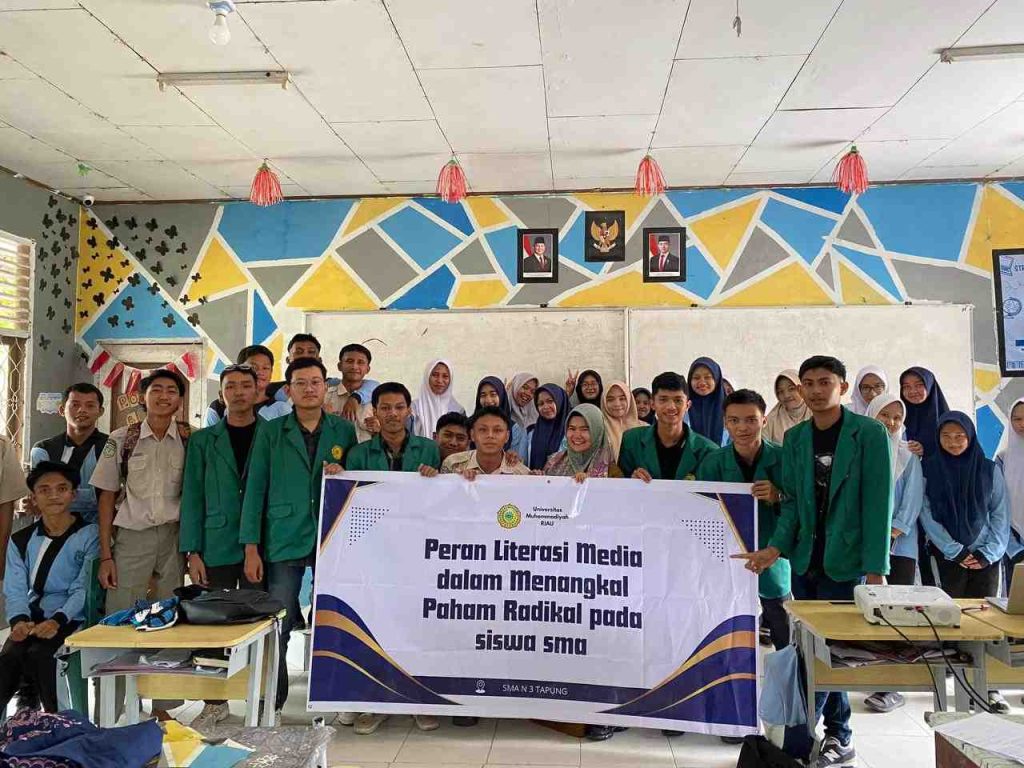 KABARLAH.COM, PEKANBARU – Dalam upaya memperkuat ketahanan generasi muda terhadap pengaruh paham radikal, mahasiswa Universitas Muhammadiyah Riau (UMRI) melaksanakan kegiatan edukasi literasi media di SMAN 3 Tapung. Kegiatan ini mengusung tema “Peran Literasi Media dalam Menangkal Paham Radikal pada Siswa SMA” dan diikuti dengan antusias oleh para siswa serta tenaga pendidik pada Selasa, 16 Desember 2026.