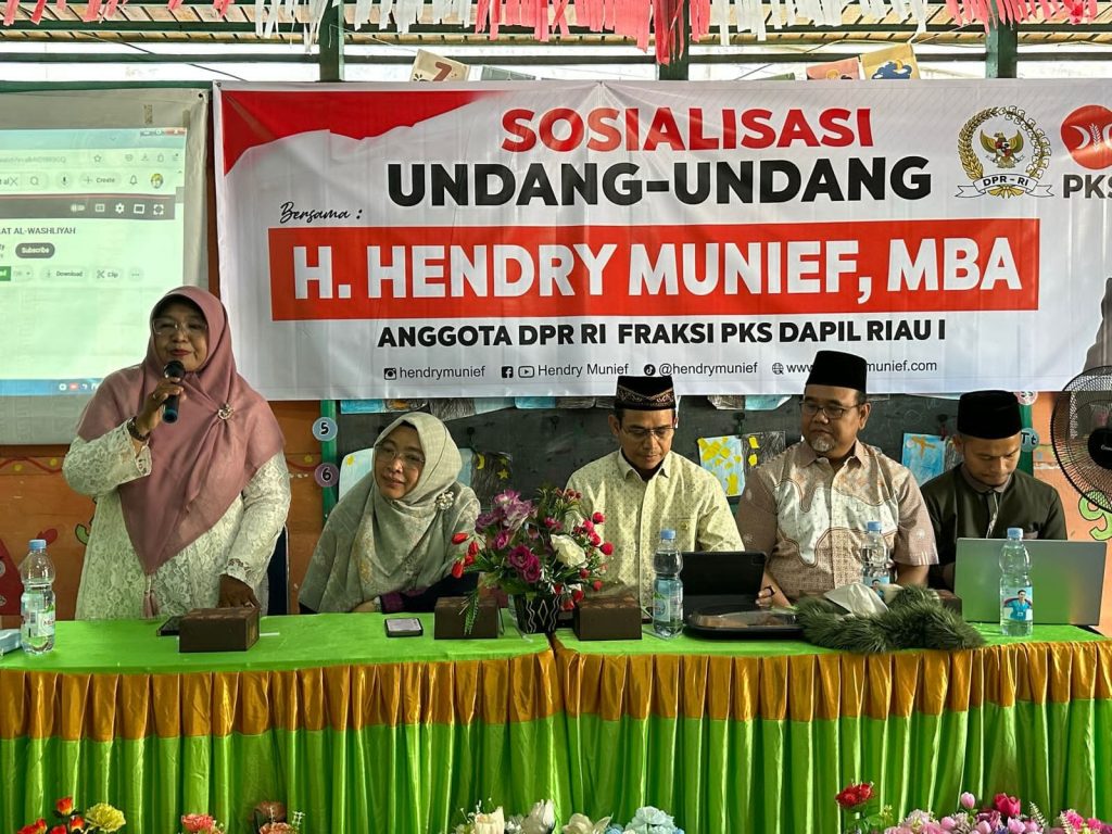 Ketua PW Muslimat al Washliyah Provinsi Riau Ustadzah Wirna, S.Ag. M.Pd menyampaikan silaturahmi yang digelar pada Sabtu (18/10/2025) bersempena dengan kegiatan Sosialisasi Undang-Undang. Kegiatan ini bertujuan mempererat silaturahmi antara Muslimat Al Washliyah dengan anggota DPR RI Hendry Munief.