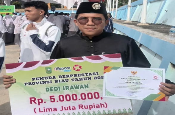 KABARLAH.COM, Pekanbaru – Dedi Irawan, Pemuda Pelopor Desa Nasional, menerima penghargaan Pemuda Berprestasi Provinsi Riau sebagai bentuk apresiasi dari Dinas Pemuda dan Olahraga (Dispora) Riau.