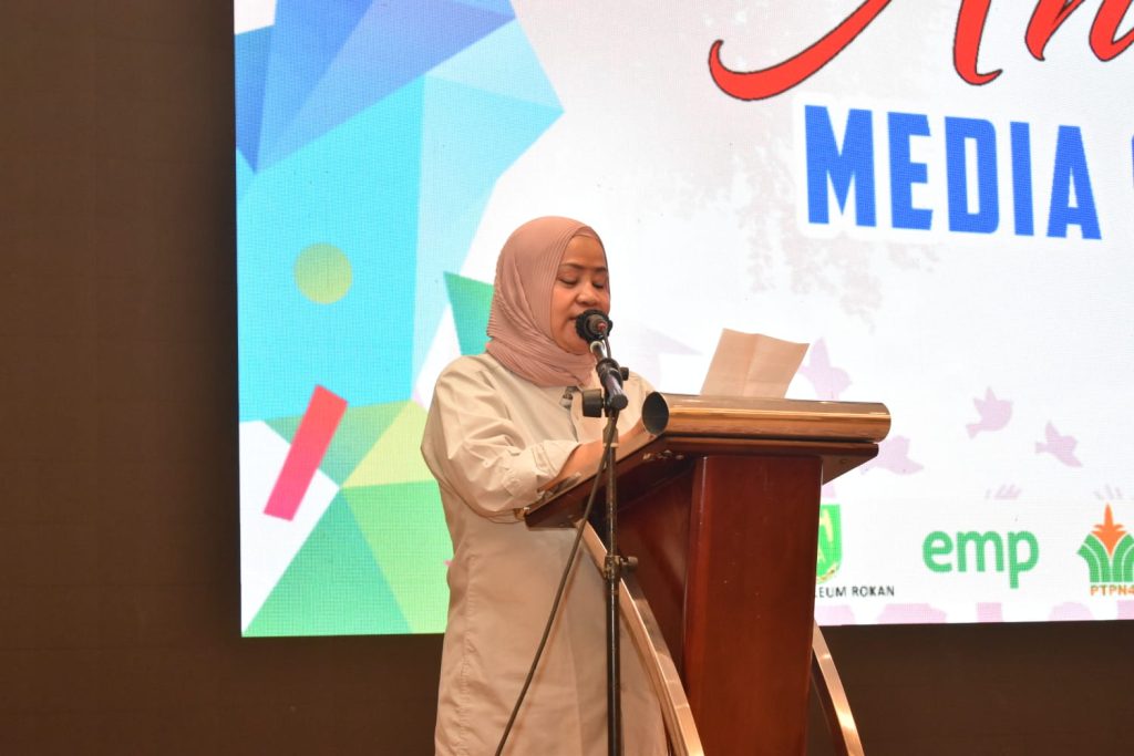 Plt Kepala Dinas Diskominfotik Riau Teza Darsa yang membacakan sambutan Gubernur Riau H Abdul Wahid menyampaikan apresiasi terhadap pelaksanaan Anugerah Media Siber Indonesia Serikat Media Siber Indonesia (SMSI) Provinsi Riau 2025 yang pertama digelar tahun ini.
