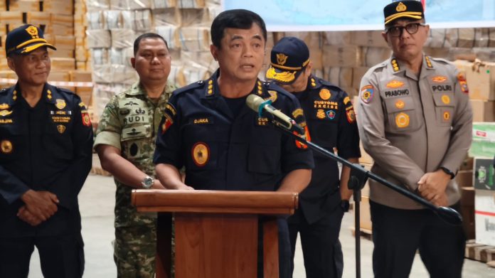 āDalam pengungkapan ini kami DJBC Kementerian Keuangan menyita sekitar 160 juta batang rokok ilegal dengan nilai ekonomi ditaksir mencapai Rp300 miliar dari sebuah gudang di kawasan Pergudangan Avian, Jalan Siak II, Kecamatan Payung Sekaki, Pekanbaru, Riau,ā kata Direktur Jenderal Bea dan Cukai, Letnan Jenderal Djaka Budi Utama, dalam konferensi pers yang digelar di lokasi gudang Blok H Nomor 2, Selasa (7/1/2026).
