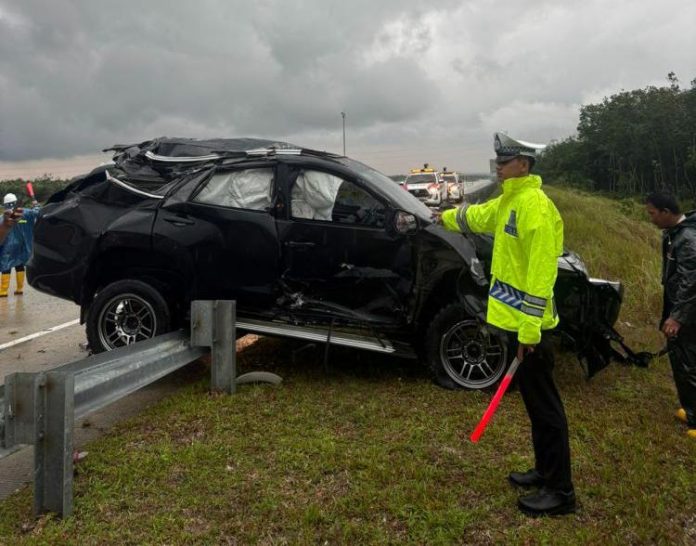 Mobil Fortuner Tabrak Pembatas Jalan di Tol Pekanbaru-Bangkinang, 1 penumpang Luka Berat