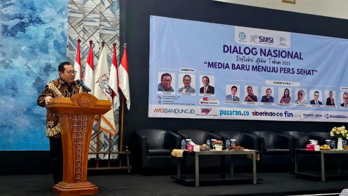 KABARLAH.COM, Jakarta – Serikat Media Siber Indonesia (SMSI) Pusat kembali menunjukkan perannya dalam penguatan ekosistem pers nasional dengan menggelar Dialog Nasional Refleksi Akhir Tahun 2025 bertema “Media Baru Menuju Pers Sehat”. Kegiatan ini berlangsung di Hall Dewan Pers, Jalan Kebon Sirih, Gambir, Jakarta Pusat, Senin (15/12/2025).