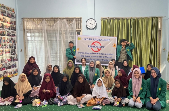Mahasiswa tersebut menyampaikan materi mengenai pentingnya literasi media dan analisis teks dalam menangkal narasi radikalisme di era digital. Dengan kemampuan menganalisis informasi yang diterima dari media sosial, individu dapat mengidentifikasi konten yang berpotensi radikal dan mengambil tindakan untuk menghindari atau melaporkannya.
