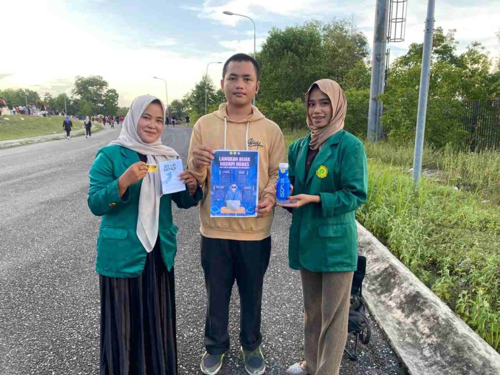 Memanfaatkan momen hari Minggu yang ramai oleh warga yang berolahraga, para mahasiswa tersebut turun langsung membagikan pamflet edukasi berisi panduan menghadapi berita bohong (hoaks). Tidak hanya itu, mereka juga membagikan minuman gratis kepada warga sebagai bentuk apresiasi.