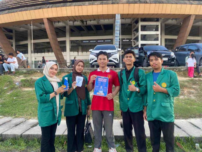 Foto :Mahasiswa UMRI sedang membagikan brosur di Stadion Utama.